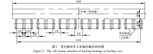 某鋼廠3800 mm熱矯直機(jī)直接采用背襯軸承作支承輥的輥系結(jié)構(gòu)簡圖,見圖2。
