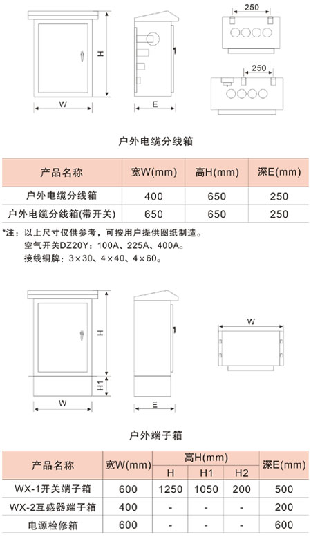 關(guān)于不銹鋼配電箱的知識(shí)前面也整理了不少,接下來(lái)主要分享配電箱各類(lèi)產(chǎn)品,讓你更直觀的了解不銹鋼配電箱哦。今天主講不銹鋼戶(hù)外端子箱、分線(xiàn)箱用途及安裝尺寸: